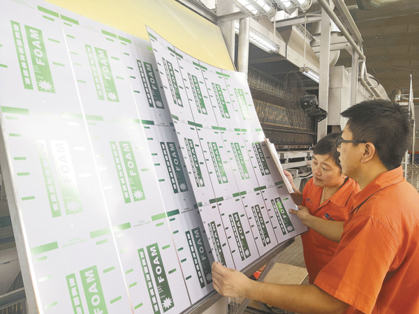 今年初以來,河鋼集團衡板公司根據夏季印鐵市場特點和客戶需求調整生產線產品結構,創新生產工藝,積極擴大啤酒罐、罐頭盒等各種高端食品級飲料罐的市場。7月,該公司新增飲料罐客戶3家,高端食品級飲料罐訂單環比增加43.2%。圖為該公司印鐵事業部員工正在對烘幹機出口的印鐵產品進行檢查。 (王紅霞 攝)