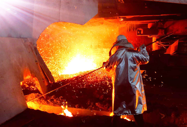 煉鐵職工在爐前出鐵作業
