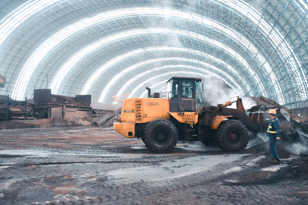 圖為原料場內正在進行收堆作業