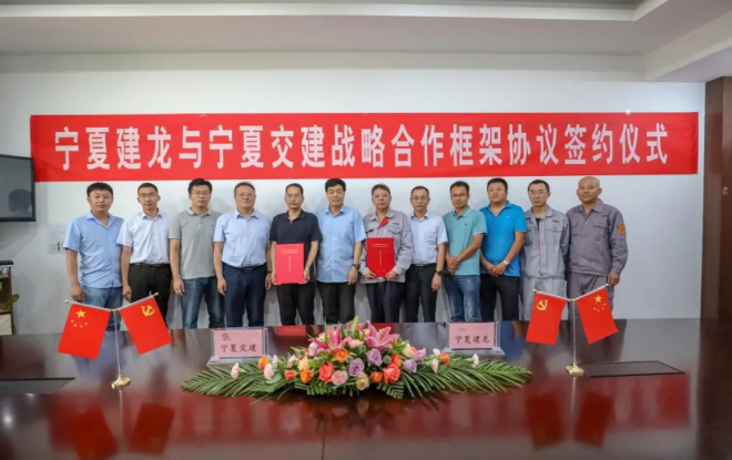 7月10日,寧夏建龍與寧夏交通建設股份有限公司(簡稱寧夏交建)簽署戰略合作框架協議。寧夏建龍安全總監趙宏與寧夏交建總工程師門光譽分別代表雙方簽署協議。