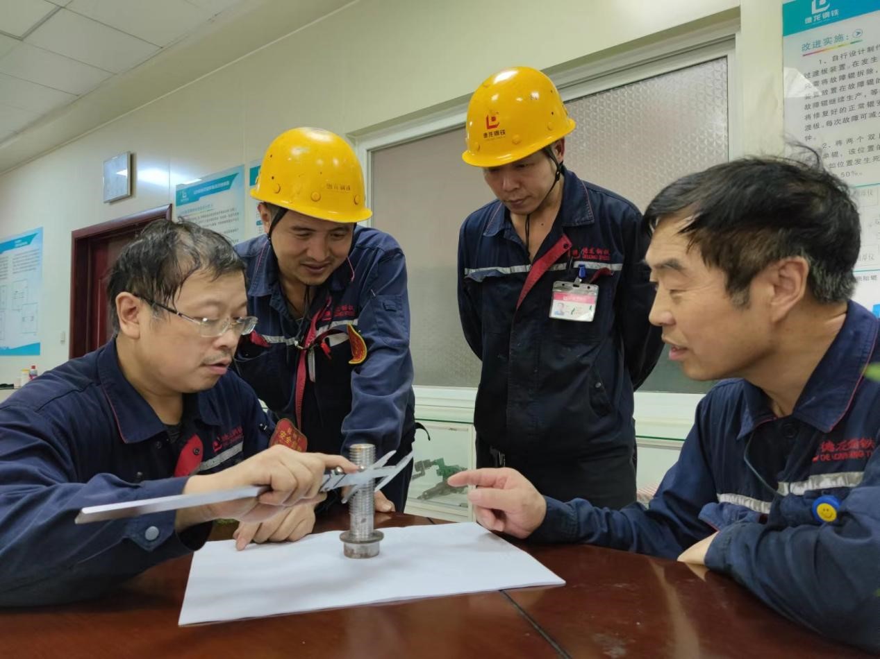 近日,德龍軋鋼廠使用創新的1250精軋HGC油缸複位裝置,按照使用步驟成功將精軋F6HGC油缸恢複到位。在檢查使用效果後,省級創新工作室帶頭人楊振海滿意地說:“原來需要人工半小時的危險性作業,創新後現在一分鍾就能搞定!我粗略地算了一下,每月節約的人工費用、生產誤時折算費用,以及產生的經濟效益,加起來有10萬多元呢。”