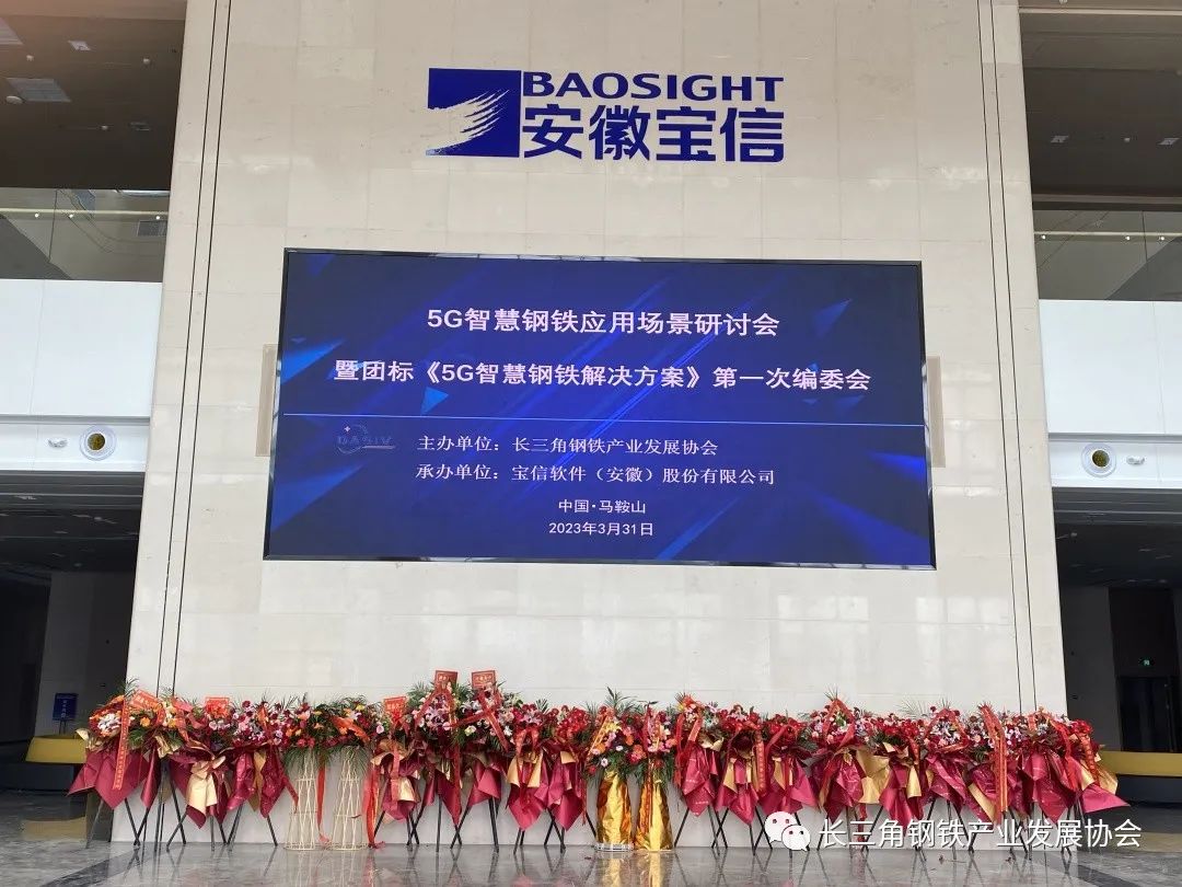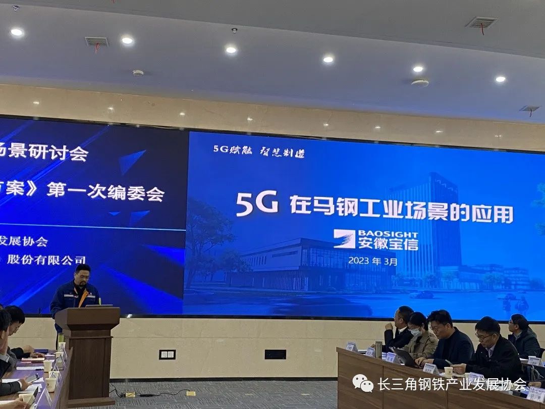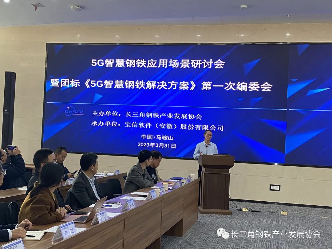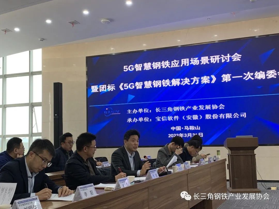 2023年3月31日下午,長三角鋼鐵產業發展協會主辦的"5G智慧鋼鐵應用場景研討會暨團標《5G智慧鋼鐵解決方案》第一次編委會"在寶信軟件(安徽)股份有限公司暨馬鞍山智能裝備及大數據產業園召開。