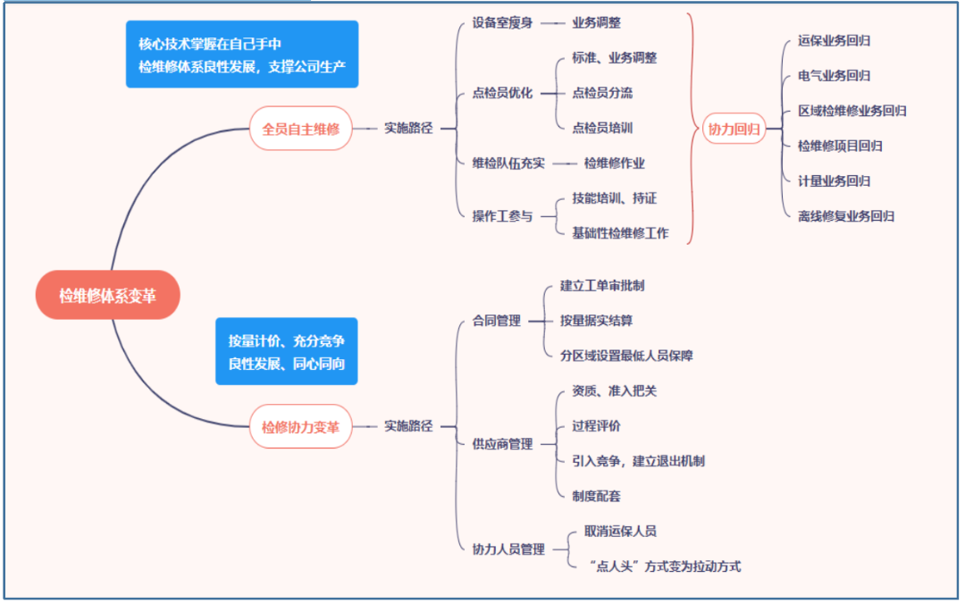 推進全員自主維修,推進檢修協力變革,同步鼓勵多種模式的配套檢修協力項目回歸。
