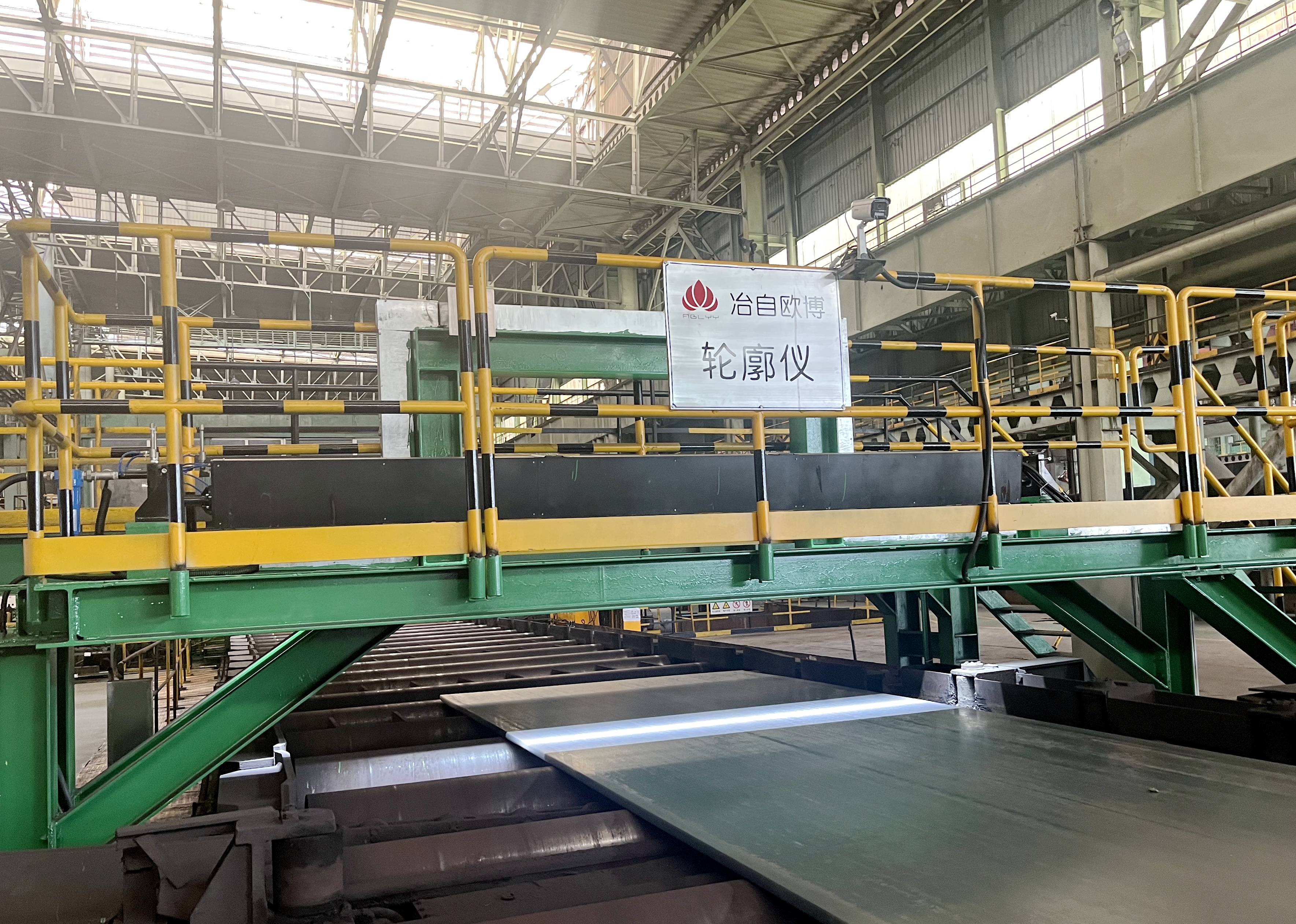 中南股份特軋廠chang板ban材cai工gong序xu自zi動dong定ding尺chi剪jian切qie項xiang目mu通tong過guo在zai精jing整zheng定ding尺chi剪jian前qian增zeng設she頭tou尾wei輪lun廓kuo儀yi,可ke以yi實shi時shi測ce量liang來lai料liao鋼gang板ban的de頭tou尾wei缺que陷xian,以yi此ci數shu據ju重zhong新xin優you化hua剪jian切qie二er級ji規gui程cheng,根gen據ju鋼gang板ban來lai料liao情qing況kuang準zhun確que設she定ding頭tou部bu、板體、樣體、尾部等位置的剪切長度,不再需要人工進行劃線指導剪切操作,實現鋼板剪切尺寸命中率100%,確保鋼板頭尾的缺陷精準剪切幹淨。同時采用國內自主研發的複尺儀,升sheng級ji質zhi量liang預yu警jing功gong能neng,實shi現xian鋼gang板ban自zi動dong剪jian切qie後hou的de尺chi寸cun測ce量liang判pan定ding與yu係xi統tong訂ding單dan進jin行xing複fu核he。複fu核he合he格ge後hou可ke將jiang係xi統tong數shu據ju直zhi接jie傳chuan遞di到dao噴pen印yin係xi統tong中zhong,進jin行xing自zi動dong噴pen印。