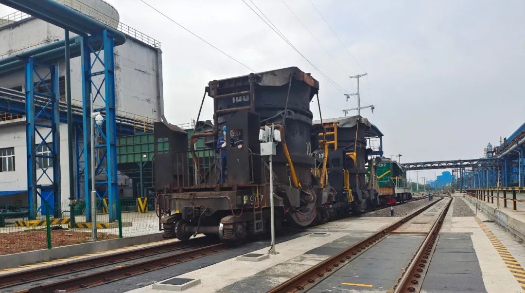 湛藍的天空下,一列火車頭拉著鐵水罐車從公司新1#動態鐵水衡shangshunlitongguo,chaozheliangangchangdefangxiangpingwenshiqu。zuozaijiliangshilideshebeiguanlibujiliangyunweirenyuanjiluxiatieshuiguandejiliangshuju,tongguozhongliangbidui,xindongtaitieshui衡計量誤差符合計量要求。