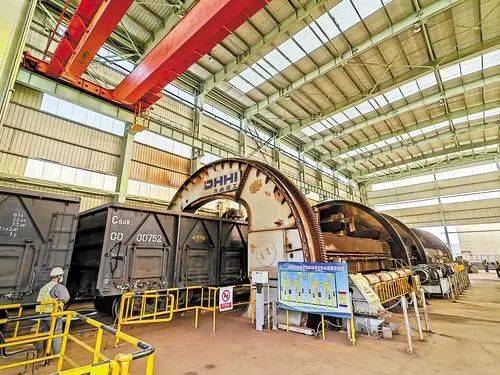 11月2日,敬業集團卸車機房內,滿載鐵礦石的火車正在卸車。河北日報記者 馬朝麗攝