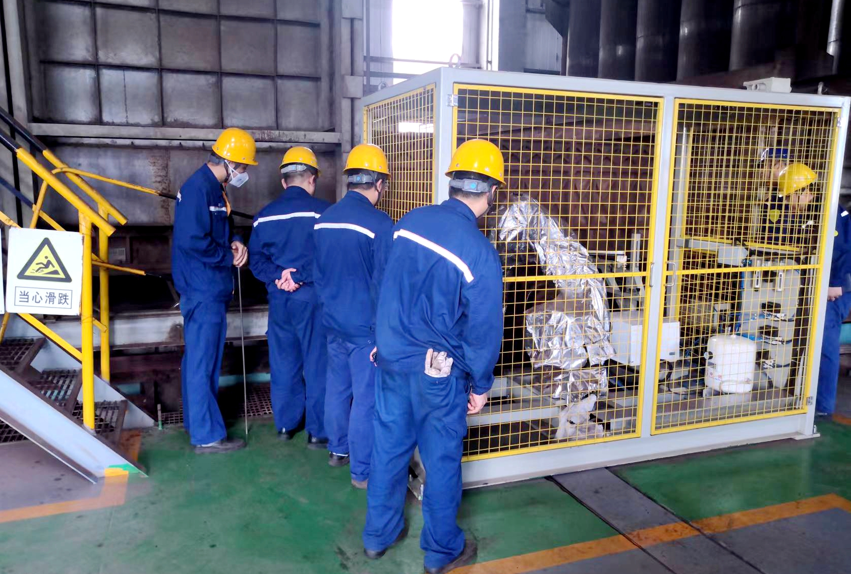 近日,寶武集團中南股份昆侖科技協同煉鐵廠、設備管理部開展了5號(hao)燒(shao)結(jie)機(ji)台(tai)車(che)輪(lun)智(zhi)能(neng)注(zhu)油(you)機(ji)器(qi)人(ren)項(xiang)目(mu)驗(yan)收(shou)。以(yi)機(ji)器(qi)人(ren)替(ti)代(dai)人(ren)工(gong)完(wan)成(cheng)注(zhu)油(you)作(zuo)業(ye)與(yu)管(guan)理(li),可(ke)減(jian)輕(qing)人(ren)工(gong)勞(lao)動(dong)強(qiang)度(du),增(zeng)加(jia)注(zhu)油(you)頻(pin)率(lv),改(gai)善(shan)操(cao)作(zuo)環(huan)境(jing),提(ti)高(gao)人(ren)員(yuan)崗(gang)位(wei)安(an)全(quan)性(xing)。