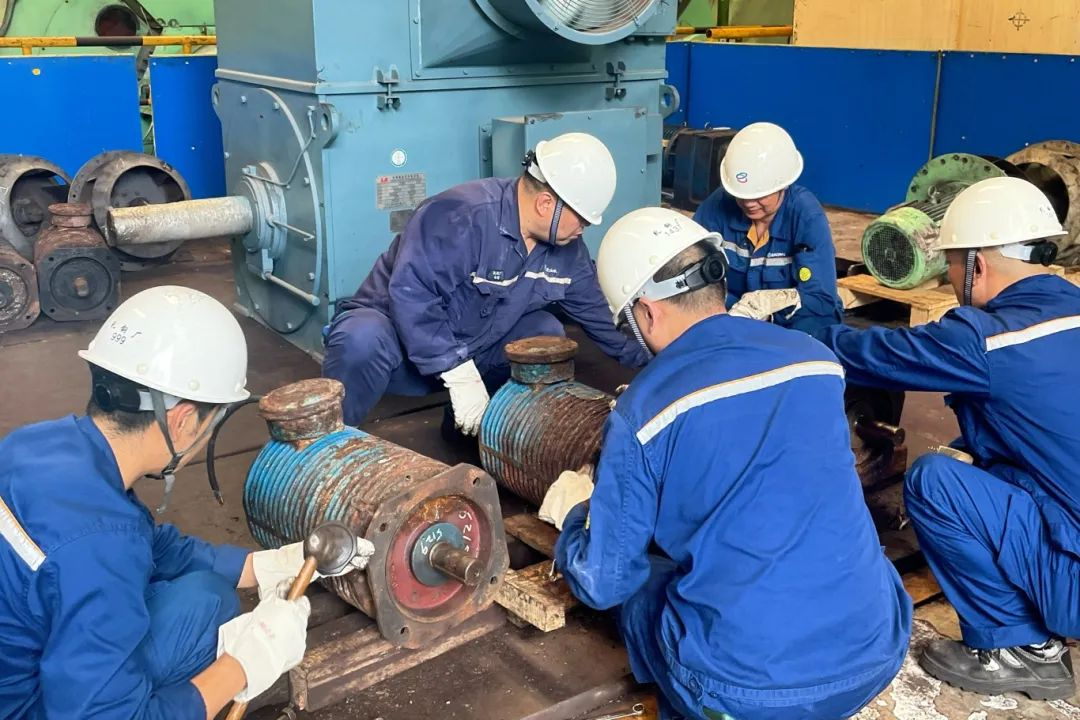 電鉗班組:變廢為寶,修舊利廢顯智慧。設備作業區電鉗班ban組zu自zi成cheng立li以yi來lai,全quan麵mian推tui行xing修xiu舊jiu利li廢fei工gong作zuo,節jie省sheng了le大da量liang新xin品pin備bei件jian采cai購gou費fei用yong,降jiang本ben增zeng效xiao工gong作zuo取qu得de實shi效xiao。班ban組zu員yuan工gong將jiang各ge產chan線xian送song來lai的de損sun壞huai設she備bei一yi一yi進jin行xing拆chai解jie,對dui電dian機ji繞rao組zu、軸承等其他部位進行修複更換,在性能測試成功後交付機旁備件庫備案。在班組全員的努力下,成功完成熱卷精軋輔助液壓站循環泵電機、熱卷原料輥道電機、熱卷加熱爐輥道電機、熱卷加熱爐稀釋風機電機等眾多設備的修複裝配任務。截至目前,電鉗班組共計修複電機59台,累計節省采購費用約30萬元。