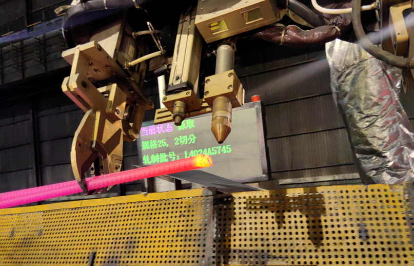 棒三線自動取樣機器人係統采用ABB六軸機器人、激光掃描、圖像識別測長及追蹤算法、自(zi)動(dong)控(kong)製(zhi)等(deng)技(ji)術(shu)。取(qu)樣(yang)機(ji)器(qi)人(ren)由(you)六(liu)自(zi)由(you)度(du)機(ji)械(xie)手(shou)和(he)伺(si)服(fu)控(kong)製(zhi)器(qi)組(zu)成(cheng),能(neng)夠(gou)靈(ling)活(huo)調(tiao)整(zheng)姿(zi)態(tai)完(wan)成(cheng)取(qu)樣(yang)作(zuo)業(ye)。所(suo)采(cai)用(yong)的(de)等(deng)離(li)子(zi)切(qie)割(ge)技(ji)術(shu)能(neng)夠(gou)確(que)保(bao)對(dui)所(suo)有(you)規(gui)格(ge)的(de)棒(bang)材(cai)進(jin)行(xing)精(jing)確(que)切(qie)割(ge),提(ti)升(sheng)取(qu)樣(yang)的(de)準(zhun)確(que)性(xing)和(he)實(shi)用(yong)性(xing);自動取樣機器人係統會根據取樣信號或者取樣時間設定,待棒材上到冷床後,機器視覺係統自動識別定位棒材位置,引導機器人抓取、剪切實現取樣,再送至拆分冷卻位完成拆分與冷卻,冷卻後自動檢測負公差,根據鋼坯號貼標留樣,替換人工單一重複工作,提高作業效率。棒三線自動取樣機器人工作流程及采樣實績接入中南鋼鐵機器人集中管控平台進行監控與管理。