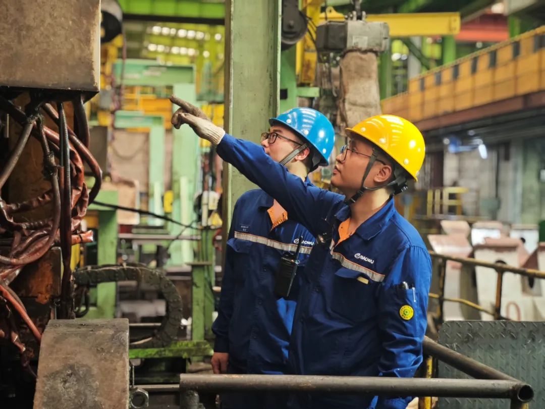 借助設備智慧管理係統(IEQMS)擰緊全流程設備管控“總開關”,深入推動全員“操檢維調"落地見效,搭建了現場操作崗基礎巡檢、設備維護崗運行點檢、專業技術崗精密診斷的現場設備管理機製。5月熱卷設備團隊通過精密點檢,成功預判工作輥冷卻水集管端蓋脫落等重大隱患,實現非計劃停機時間創曆史新低。此外通過不斷的現場跟蹤調試,實現熱卷箱同步程序"速度判斷-條件連鎖-擺鋼執行"的“智慧升級”,單次節奏有效提升23秒,為產線效率提升再添動能。