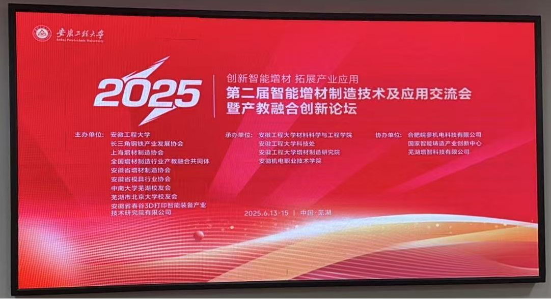 2025年6月14日第二屆智能增材製造技術及應用交流會暨產教融合創新論壇,在蕪湖召開,長三角鋼鐵產業發展協會與安徽工程大學、上海增材製造協會、全國增材製造行業產教融合共同體、安徽省增材製造協會、安徽省模具行業協會、中南大學蕪湖校友會、蕪湖市北京大學校友會、安徽省春穀3D打印智能裝備產業技術研究院有限公司共同主辦。