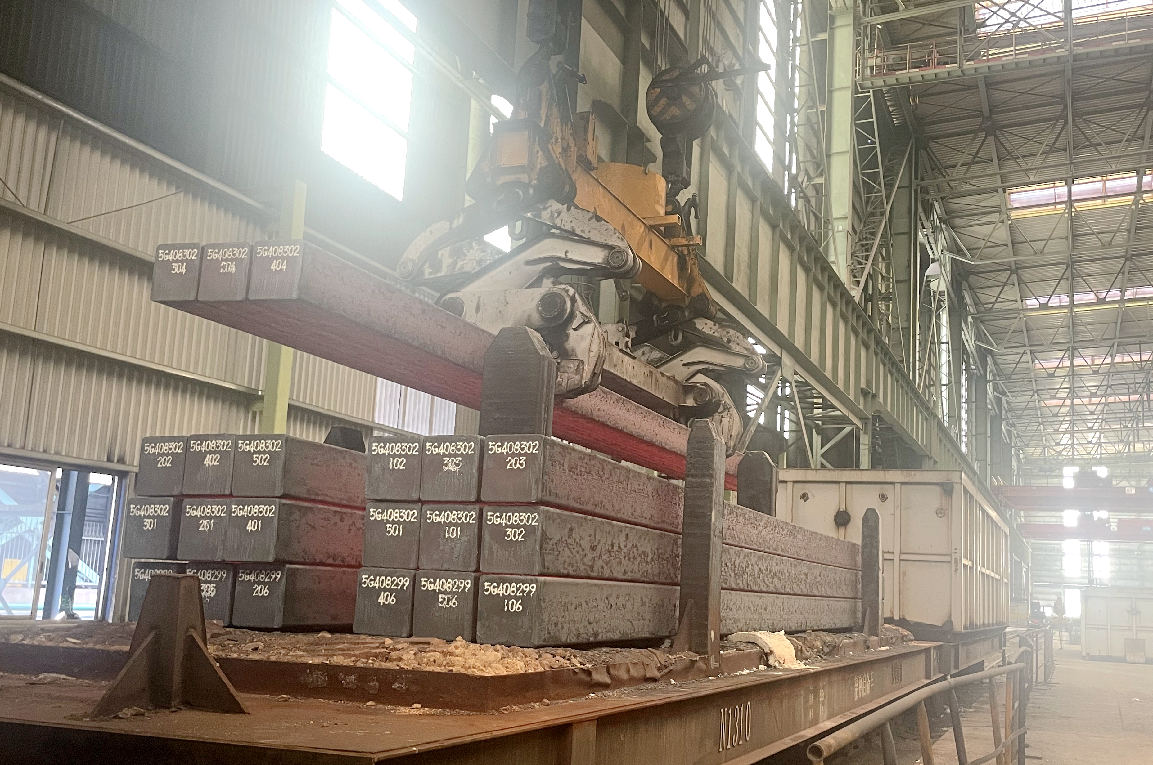 看似簡單的“增夾”,背後是精密的計算:夾鉗承重極限能否承受3支鋼坯?鋼坯排列是否會影響裝車穩定性?火車皮載重量與單爐鋼坯重量是否匹配?連鑄車間管技團隊連續3天蹲守現場,用卷尺量鋼坯間距,拿測重儀核單支重量,甚至用廢鋼坯模擬裝車——最終確認:在7號連鑄機一爐鋼坯重量與火車一節車廂載重量基本匹配的前提下,將夾鉗由“2支一夾”調整為“3支一夾”,完全可行!