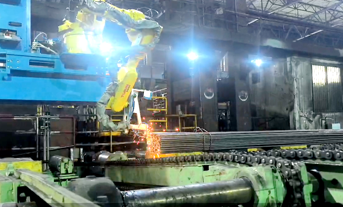 寶武集團中南股份軋材廠棒一工序在線機器人智能焊牌係統在相關方麵的共同努力下,於近日準點完工,具備熱試投用條件。