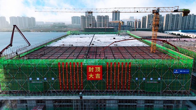 1月10日,中國十七冶承建的江北新區產業園和縣分園南區項目首棟單體2號廠房主體結構封頂。