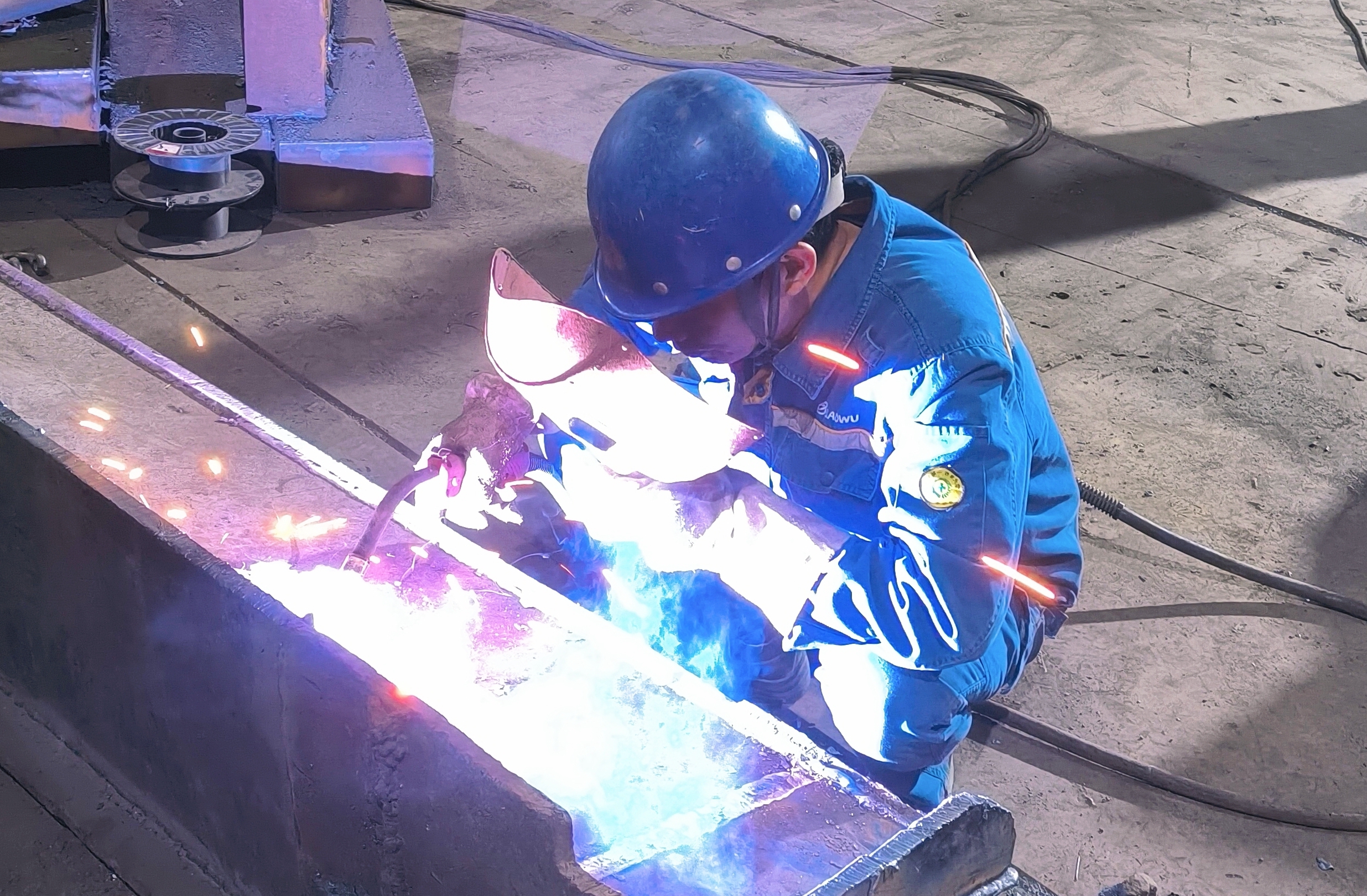 “核心部件完好,必須讓它重獲新生!”班組骨幹現場“會診”後果斷決策。一場與時間賽跑的“設備手術”隨即展開:割槍遊走間精準剖開斷裂處,砂輪打磨出標準坡口;焊條在老師傅手中化作“縫合針”,斷裂板體被牢固焊合;火把炙烤配合大錘精準敲打,扭曲變形的板體漸複平整;同步更換新導輪,對插板底座補焊加固,不放過任何細節……經過一番精心維修,原本“傷痕累累”的推渣板煥然一新。