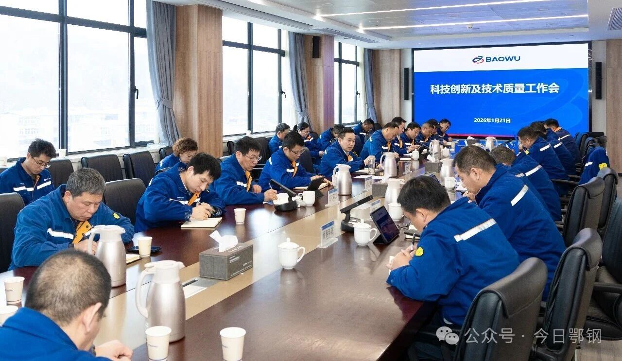 1月21日,鄂城鋼鐵公司召開科技創新暨技術質量工作會議,全麵總結2025年科技創新與技術質量管控情況,部署2026年重點任務,凝聚起以科技創新為核心、以質量提升為支撐的發展共識,為企業高端化、智能化、綠色化轉型注入強勁動力。