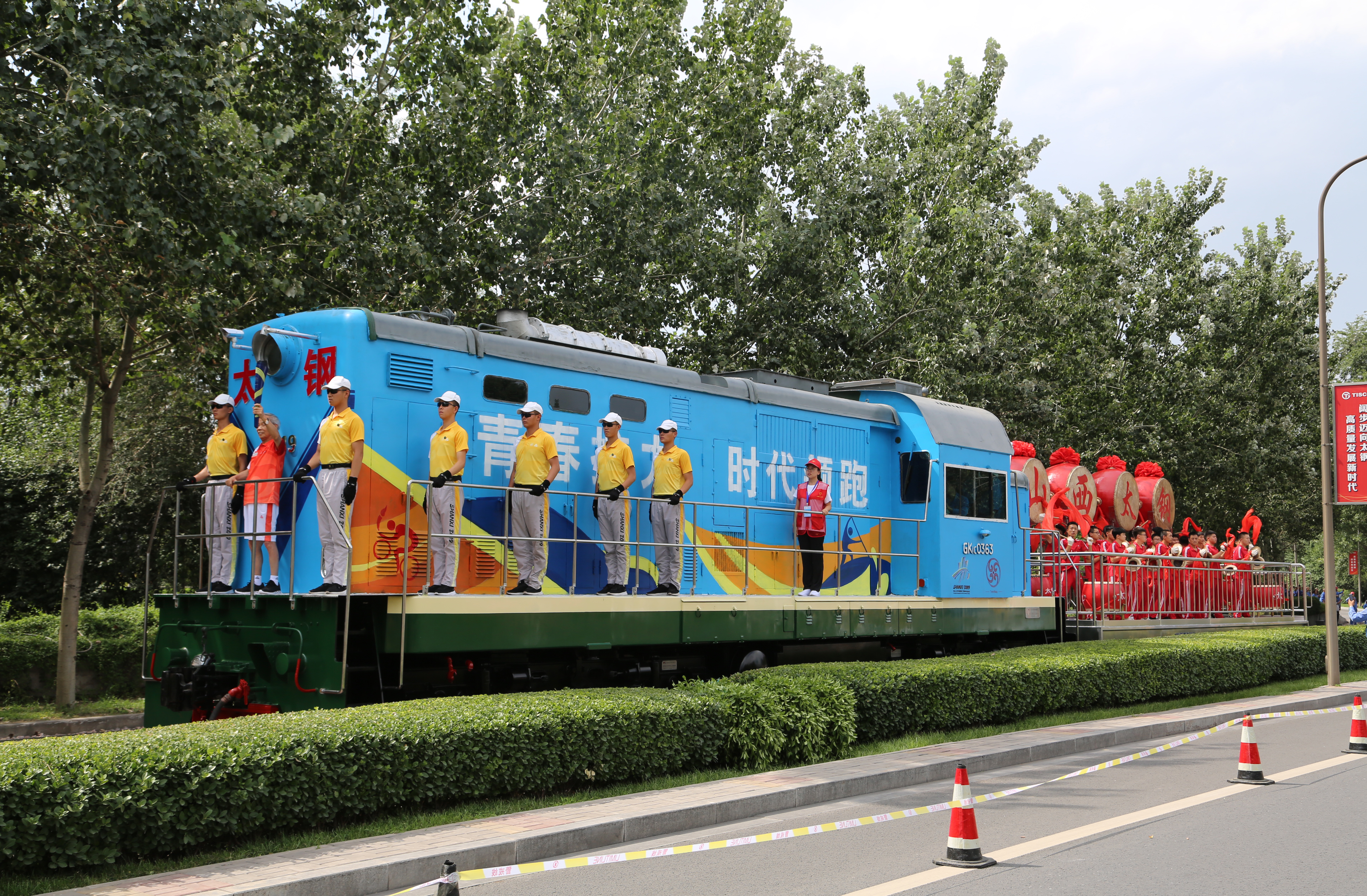 圖為二青會火炬在太鋼進行火車傳遞。 武濱 攝