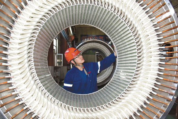 今年初以來,包鋼西創電氣公司(森鼎公司)與(yu)國(guo)家(jia)稀(xi)土(tu)永(yong)磁(ci)電(dian)機(ji)工(gong)程(cheng)技(ji)術(shu)研(yan)究(jiu)中(zhong)心(xin)合(he)作(zuo),近(jin)日(ri)成(cheng)功(gong)為(wei)包(bao)鋼(gang)白(bai)雲(yun)鐵(tie)礦(kuang)一(yi)台(tai)世(shi)界(jie)上(shang)僅(jin)有(you)的(de)前(qian)蘇(su)聯(lian)製(zhi)造(zao)的(de)粗(cu)破(po)碎(sui)機(ji),開(kai)發(fa)研(yan)製(zhi)了(le)低(di)速(su)大(da)扭(niu)矩(ju)400千qian瓦wa變bian頻pin調tiao速su永yong磁ci同tong步bu電dian機ji。據ju了le解jie,該gai電dian機ji是shi全quan國guo首shou台tai應ying用yong在zai礦kuang山shan粗cu破po碎sui機ji上shang的de永yong磁ci電dian機ji,目mu前qian已yi進jin入ru製zhi作zuo階jie段duan。圖tu為wei職zhi工gong正zheng在zai檢jian查zha電dian機ji嵌qian線xian質zhi量liang。 (記者 白立新 攝)