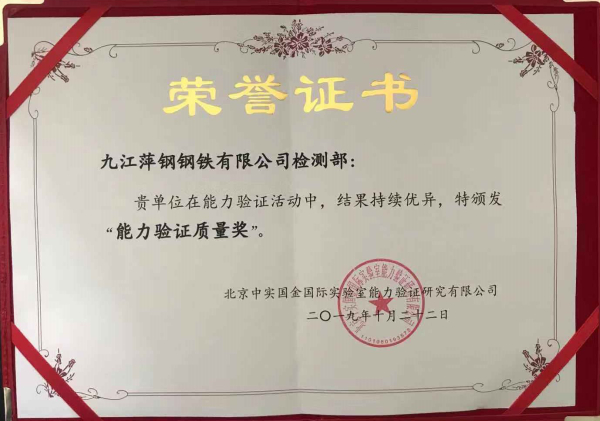方大九鋼檢測部榮獲中實國金“能力驗證質量獎”