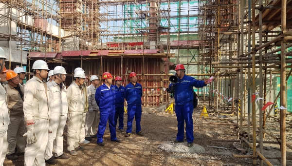 隨後,與會嘉賓在項目總工信鑫的引導下,進行了現場觀摩。通過對企業文化長廊、質量看板、實體質量、安全文明標化工地建設等的參觀,對項目工程概況、技術質量管理及施工進度把控等先進管理方法的介紹了解,對主電除塵主體結構、主抽風機主體結構和設備基礎的各工序質量控製的講解學習,觀摩人員對五冶的企業文化、管理水平和現場實體質量,紛紛豎起大拇指表示讚許。