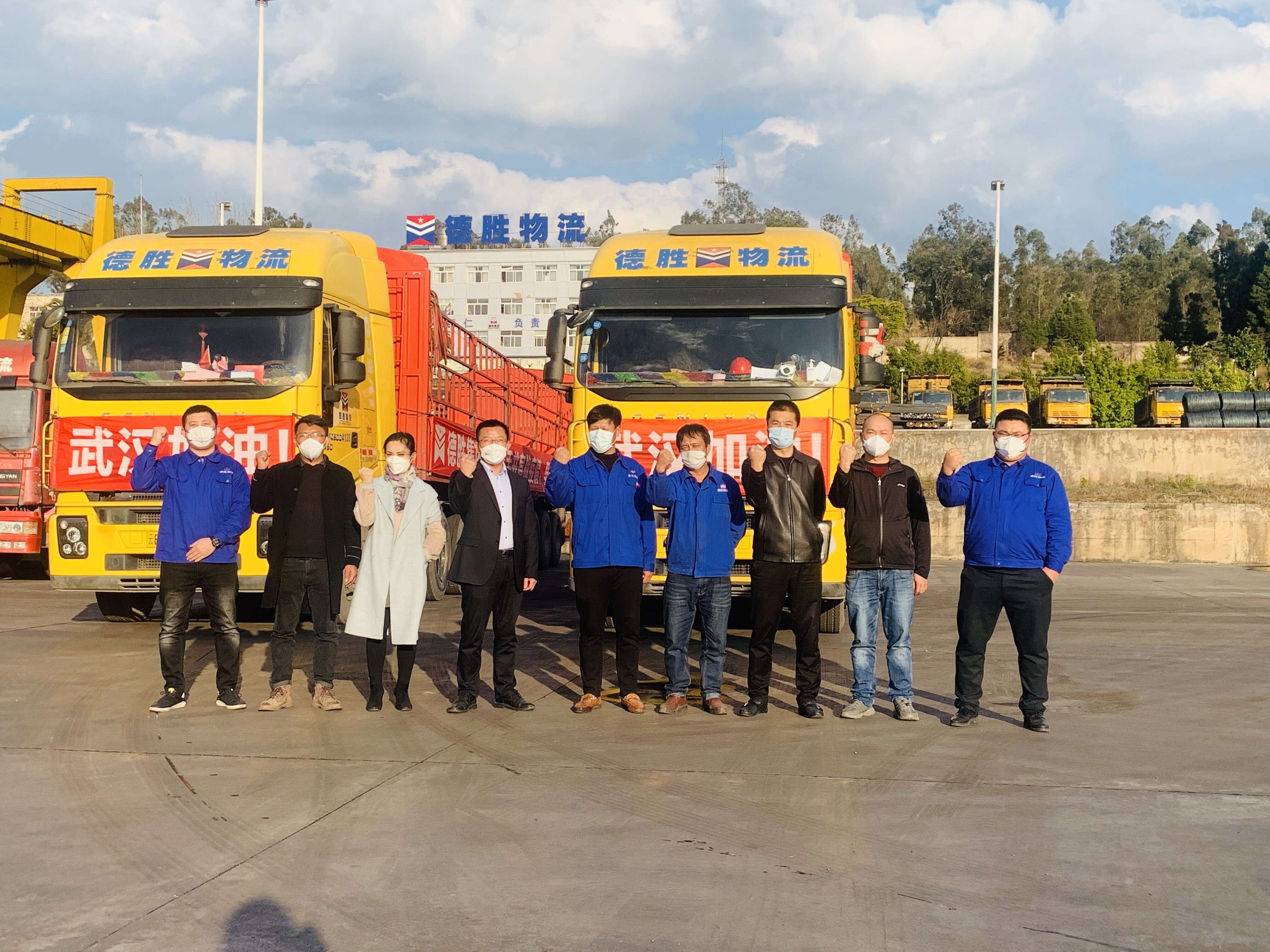 集團旗下物流公司抽調黨員組成運輸突擊隊,於2月10日、11日,安排2部牽引車免費為愛心人士承運蔬菜60噸到湖北武漢黃陂區;運輸60噸牛奶和礦泉水到湖北鹹寧。2月12日,安排4部牽引車為愛心企業免費承運蔬菜、水果到湖北黃岡及其他地區。