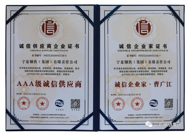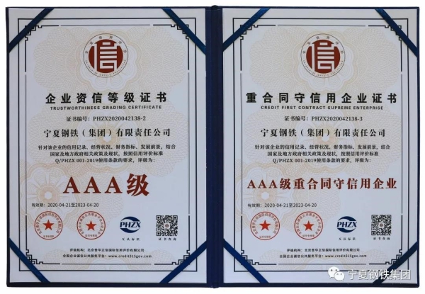 AAA級!寧鋼公司榮獲企業信用評級最高等級