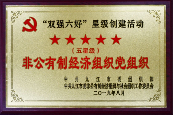 方大九鋼榮獲九江市“雙強六好”五星級“非公有製經濟組織黨組織”榮譽稱號