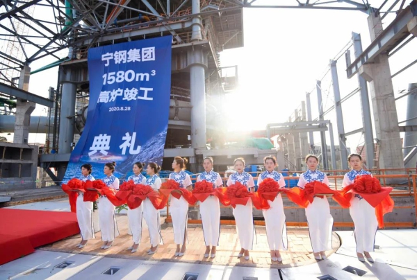 2019年9月16日,寧鋼公司1580立方高爐奠基儀式隆重舉行,此刻,百人齊登1580立方高爐,共同見證高光時刻——1580立方高爐竣工剪彩。