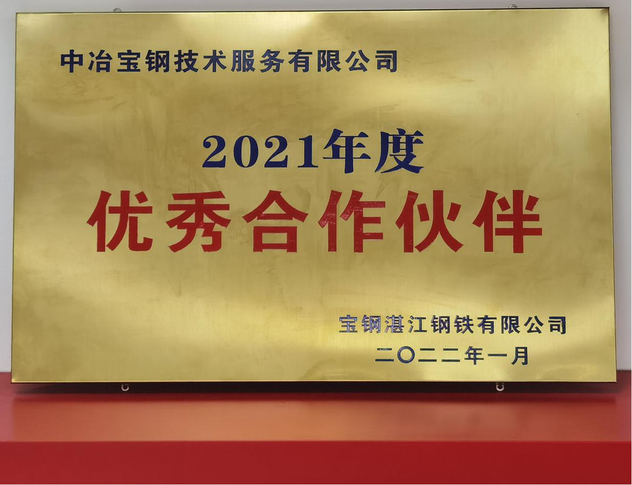 中冶寶鋼喜獲湛江鋼鐵 “2021年度優秀合作夥伴”稱號