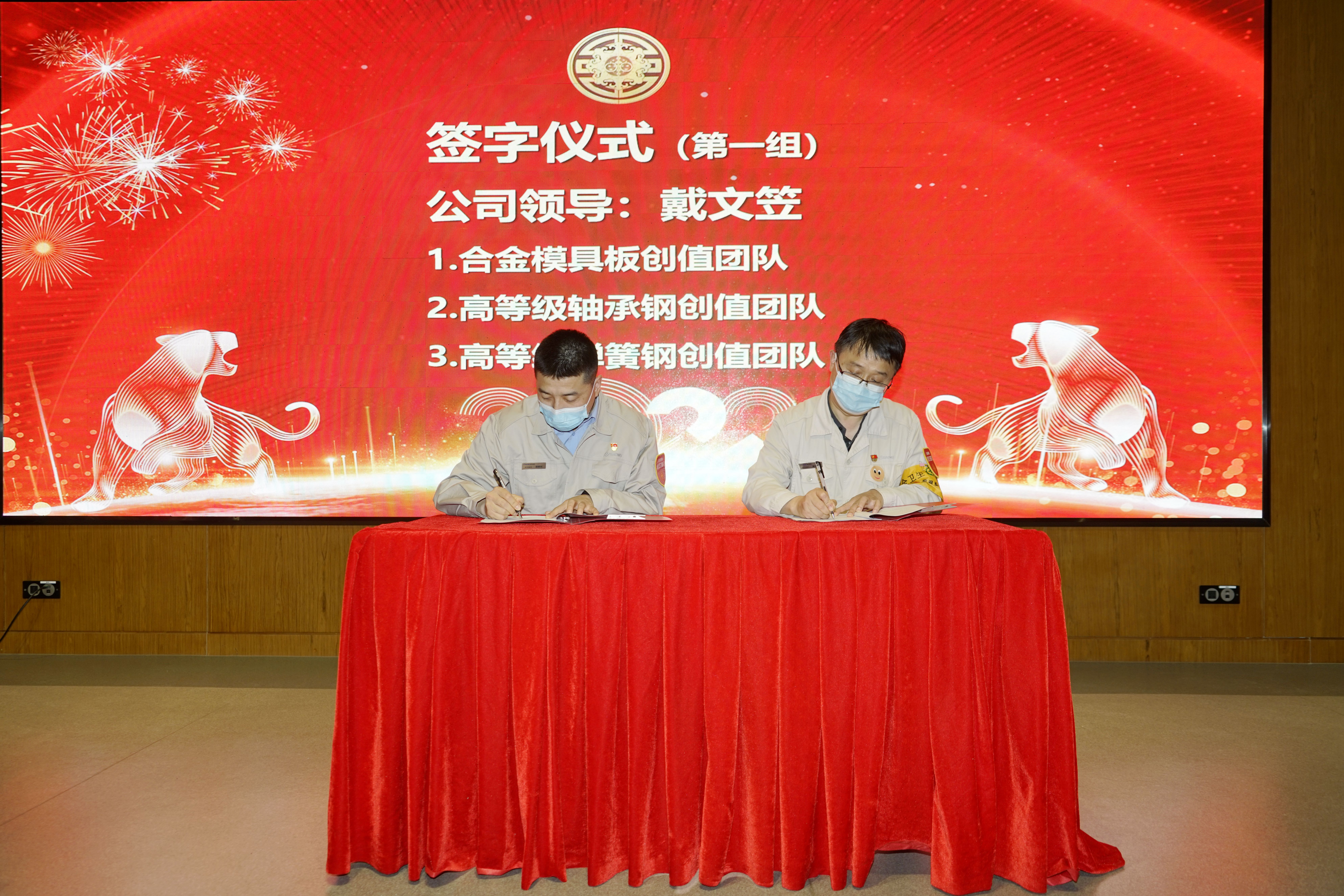 韶鋼領導分別與6個創值團隊舉行簽字儀式並進行了授旗。