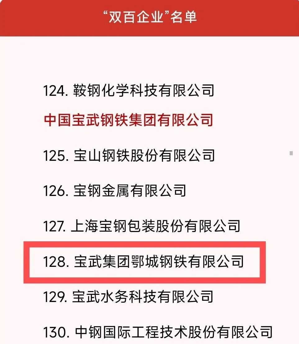 喜訊!鄂鋼成功入圍“雙百企業”名單
