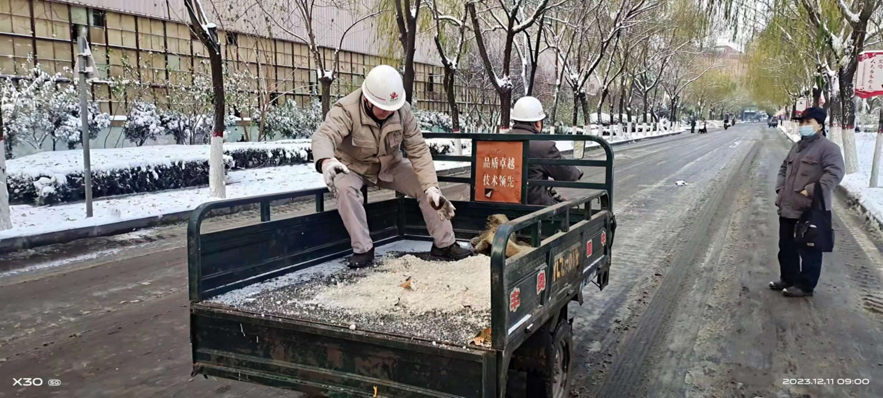 大雪襲來,該作業部“以‘雪’為令”,淩晨4點就組織夜班職工分區域清理廠區道路積雪,安排專人檢查室外各類介質管道、閥門,各種保溫措施全部執行到位,確保了生產安全穩定順行。(王述傑)