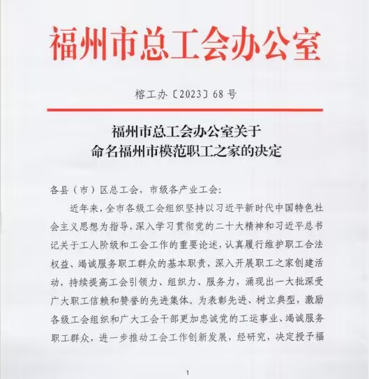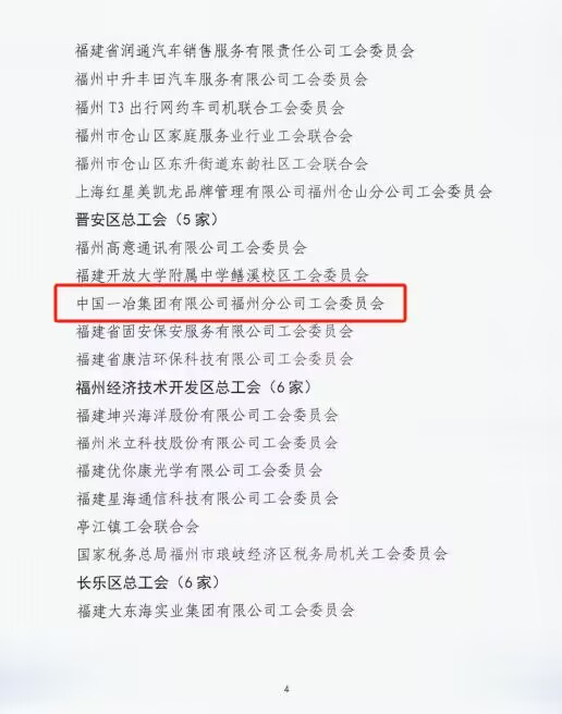 中國一冶福州公司工會獲評福州市模範職工之家