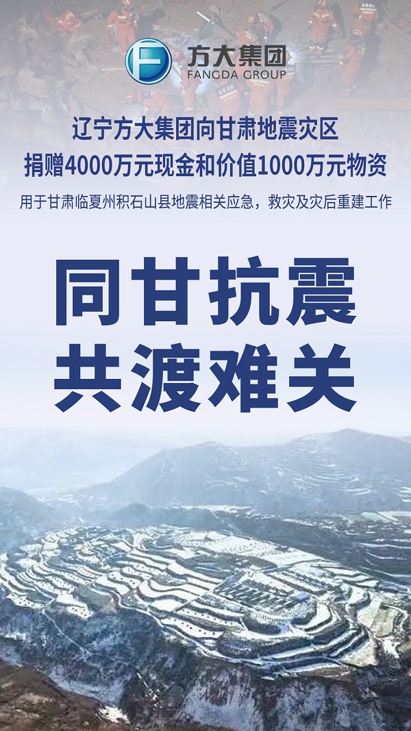 遼寧方大集團向甘肅地震災區捐贈5000萬元款物助力抗震救災