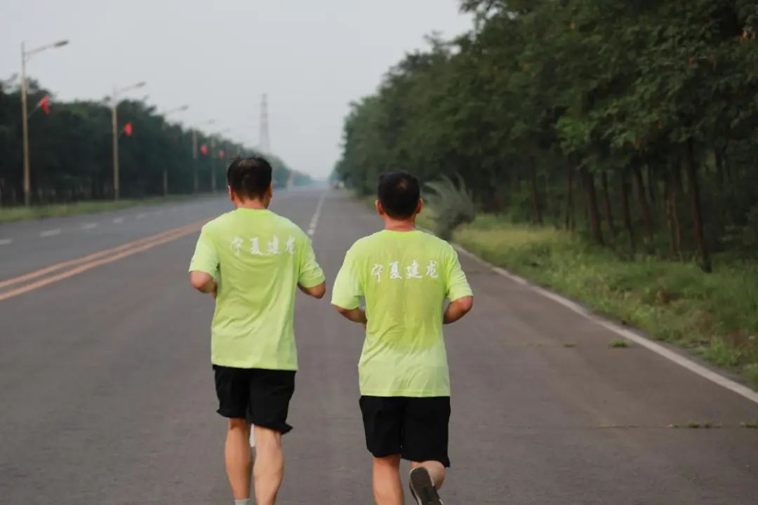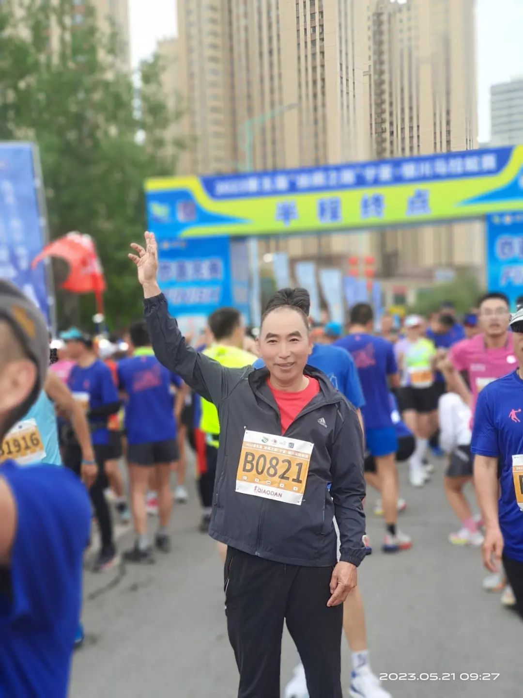像郭寶香一樣,閆治文站上這個跑道,用了11年。他大學畢業後在湖北工作了十年,前景很好,但他卻作出了離開的決定。他攜妻帶子踏上歸程,加入了剛剛成立的寧夏建龍,成為財企處一名會計管理師,他在這裏結識了一群誌同道合的跑友,也找到了人生的價值感。後來寧夏建龍成立長跑協會,他加入其中,跟著同事每日約跑,石嘴山、銀川,很多集體組織的長跑活動,他都積極踴躍參與其中。