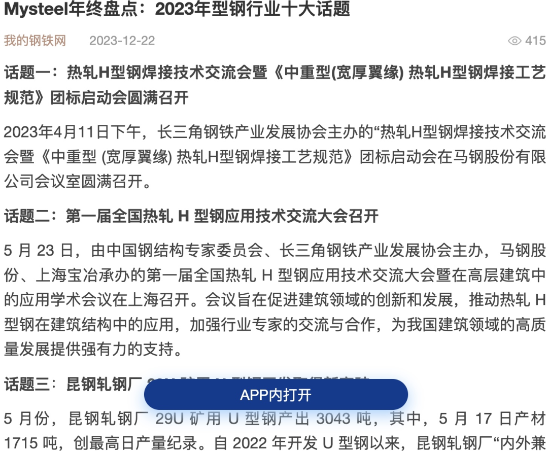 媒體機構評選2023年型鋼行業十大話題,話題第一即該團標啟動會圓滿召開。