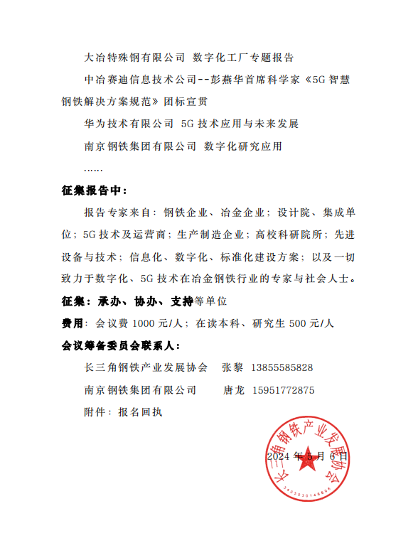2024年全國鋼鐵行業5G技術應用高峰論壇(二號通知)
