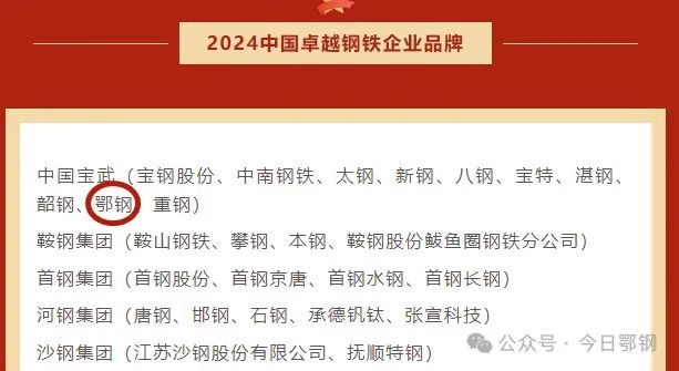 5月10日,第8個中國品牌日,中國冶金報社如期發布2024年度中國鋼鐵品牌榜:繼2023年後,鄂鋼再次上榜“中國卓越鋼鐵企業品牌”。