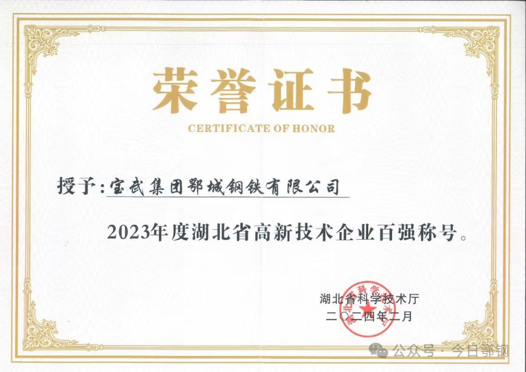 近年來,鄂鋼先後被評為國家“高新技術企業”“綠色工廠”,國家3A級旅遊景區,湖北省企業和製造業企業“雙100強”、智能製造示範單位、支柱產業細分領域隱形冠軍企業。2022年,鄂鋼成為華中地區首家超低排放A級標準鋼鐵企業。