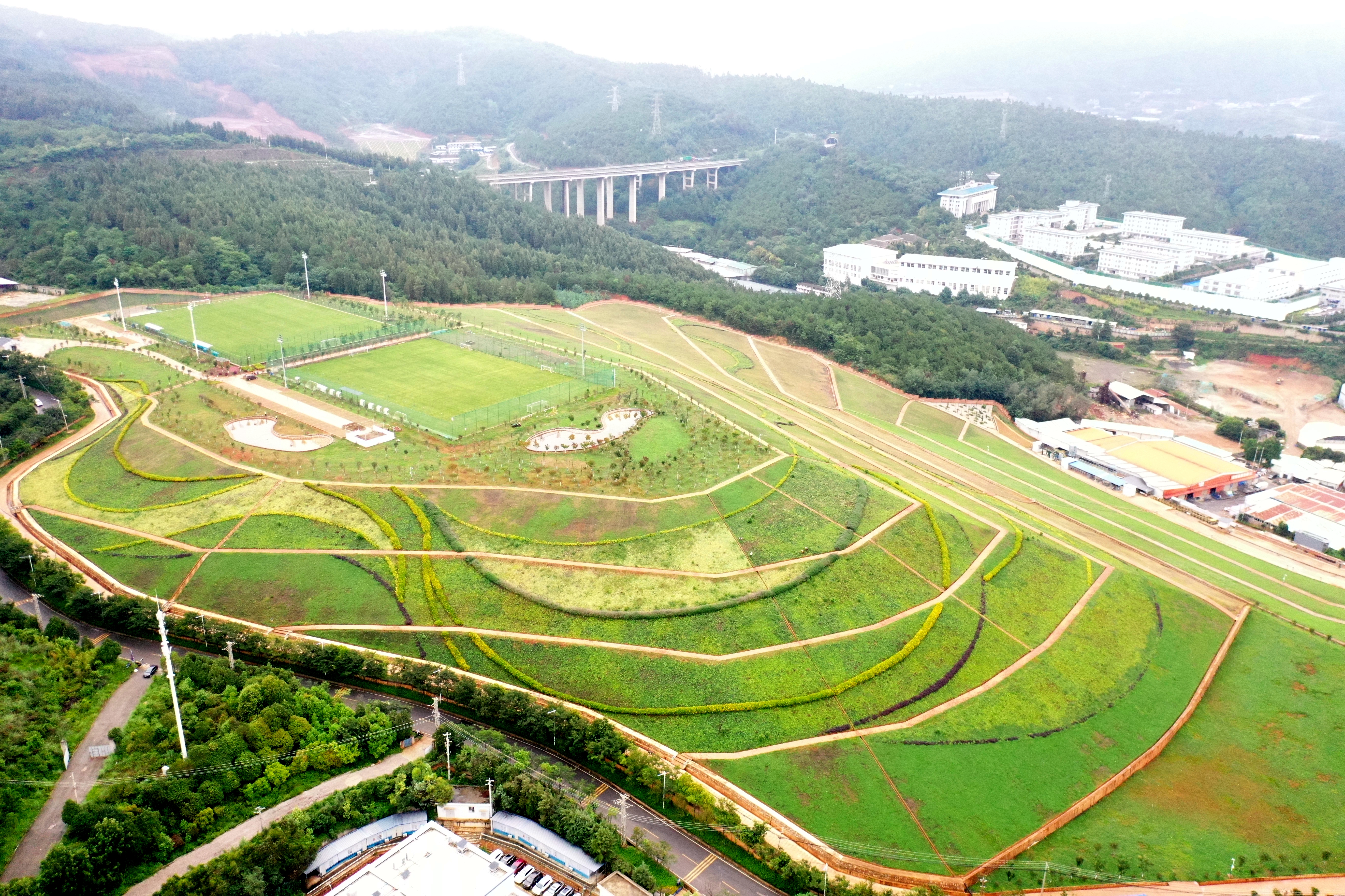 曾見證了工業輝煌的西南銅業普吉渣場,封場後猶如城市的一道傷疤。西南銅業近年投資近億元進行治理,綠化率達95%以上,並配置休閑運動場地,成為春城昆明新晉網紅打卡點,實現從“工業遺痕”到“生態地標”的華麗蛻變。