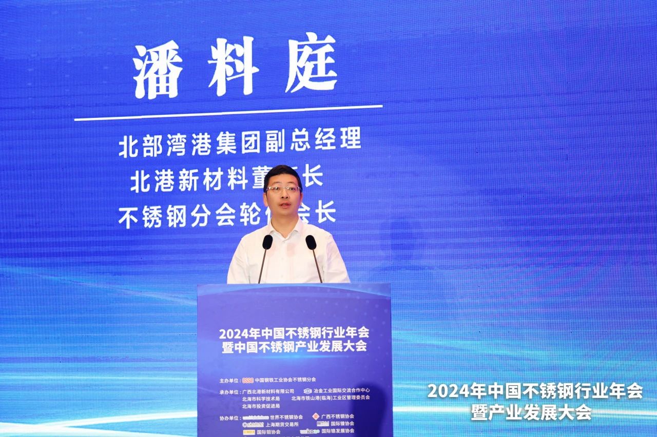 北部灣港集團公司副總經理、北港新材料公司黨委書記、董事長、不鏽鋼分會輪值會長潘料庭出席會議並致辭。