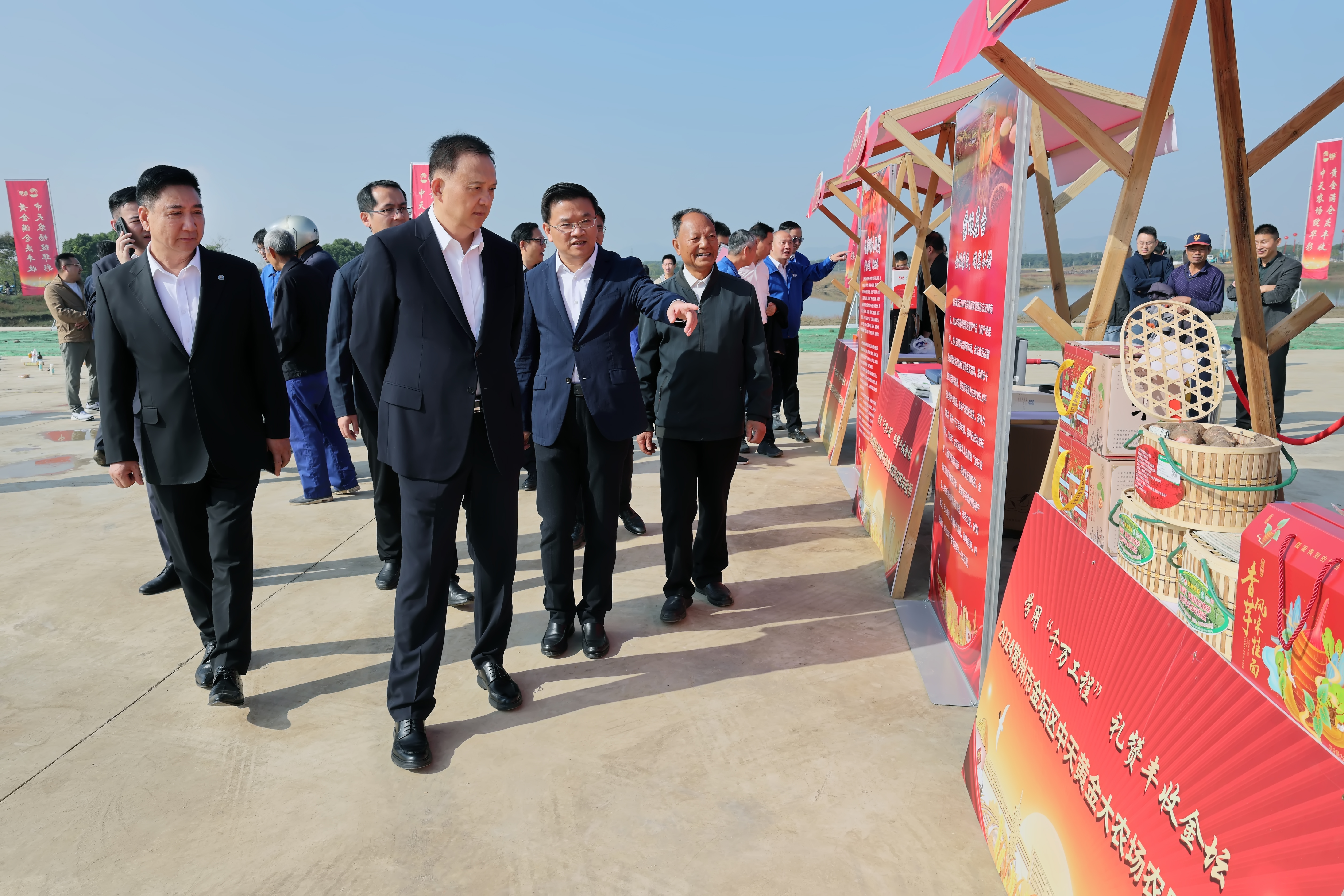 與會領導共同上台按下中天鋼鐵黃金大農場農民豐收季開鐮暨高標準農田開工儀式的啟動按鈕。