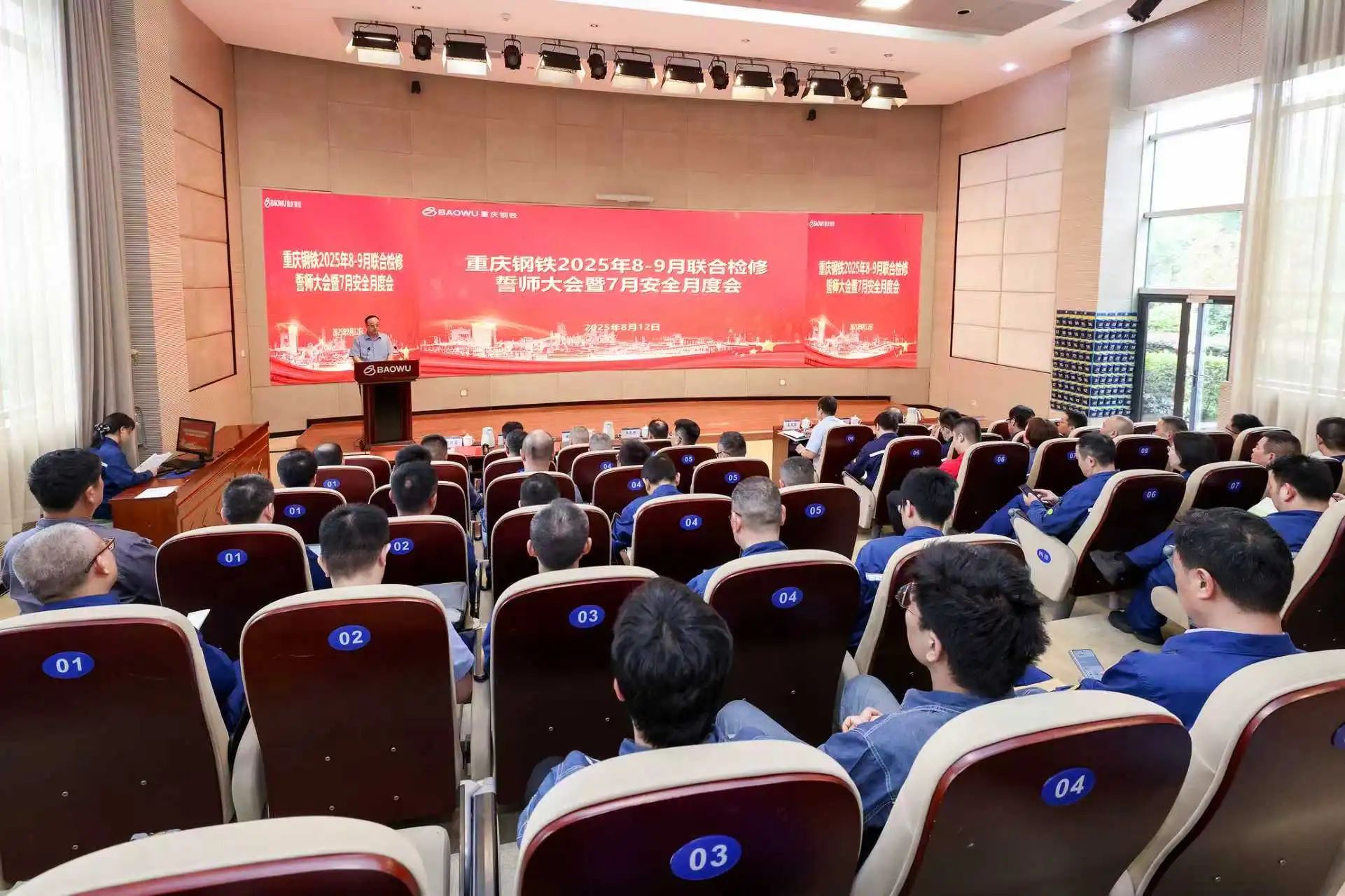 8月12日,重慶鋼鐵公司召開2025年8-9月聯合檢修誓師大會暨7月安全月度會。會議號召全體參檢將士主動擔當作為、全力攻堅克難,以堅定的信心和必勝的決心,確保高效、保質、保量、按期完成檢修任務。該公司黨委書記、董事長王虎祥,總裁、黨委副書記孟文旺等公司領導出席會議。該公司各職能業務部門、三部兩廠負責人及中冶寶鋼、寶武智維、中冶京誠等協力單位負責人參加會議。會議由高級副總裁趙仕清主持。