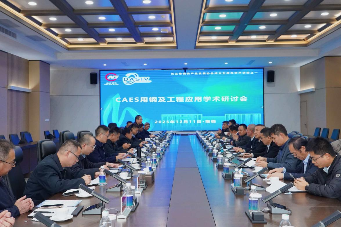 2025年12月11日下午,長三角鋼鐵產業發展協會在南鋼主辦 CAES(壓縮空氣儲能)用鋼及工程應用學術研討會。該會議為協會成立五周年學術活動之一。