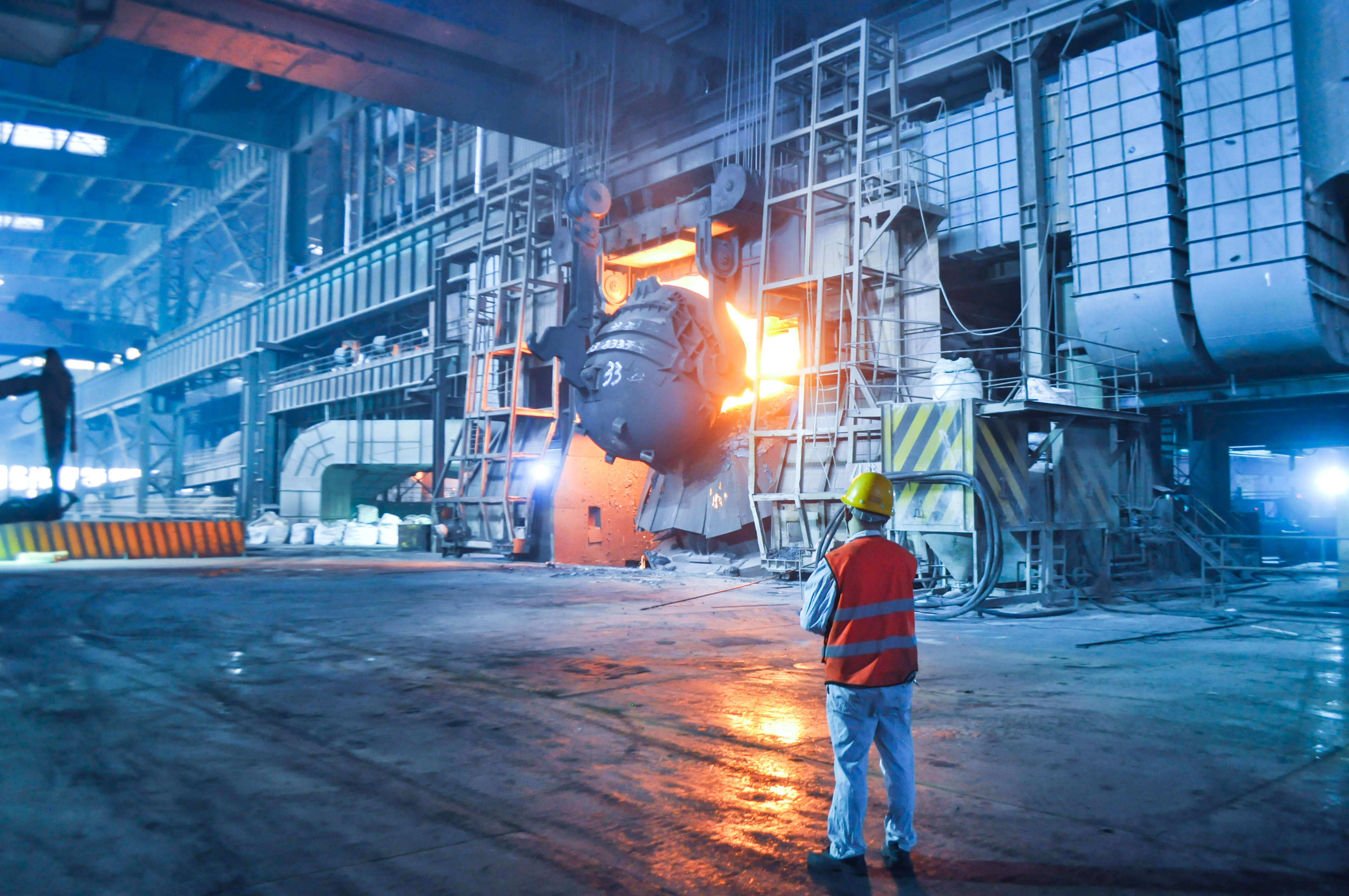 走進煉鋼廠轉爐生產現場,正巧碰到在兌鐵水作業,現場傳來“行車吊運鐵水,請注意避讓”的安全廣播,煉鋼廠領航員劉飛正吹著口哨,提醒現場人員注意安全。他一邊擦拭汗水,一邊用對講機指揮作業,熟練地引導“天車”jinxingtieshuidaoyun。zhijiantieshuihuanhuandaoruzhuanluzhizhong,sijianbengshedehuohuaxuanlizhuangguan,gungunrelangpumianerlai,jizhedelianbukaishifazhang,qingkejianbiandahanlinli。yaoyanluhuoyingshexia,jimingyuangongzhengdingzhegaowen“烘烤”,拿著測溫槍進行鋼水測溫和取樣作業。在另一頭,“鋼鐵俠”們正用電焊認真修補著廢鋼槽,爐火映紅了他們的臉龐,衣裳已被汗水濕透,但他們的臉上卻透出鋼鐵般的堅毅。
