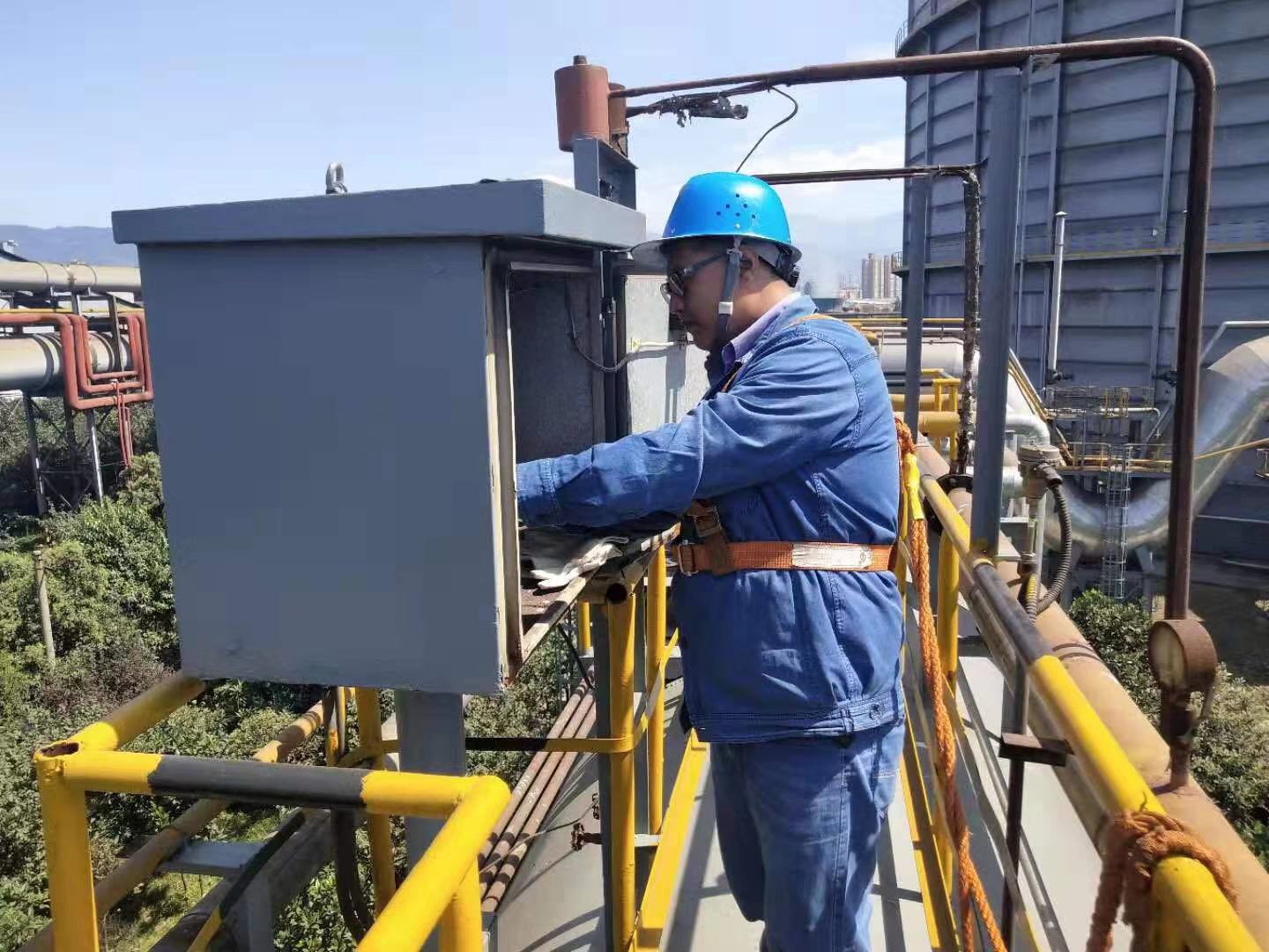 在八月的高溫天氣裏,筆者跟隨這群管網“巡邏兵”體驗了一場說走就走的“管網之旅”。當(dang)來(lai)到(dao)管(guan)網(wang)爬(pa)梯(ti),仰(yang)望(wang)著(zhe)二(er)十(shi)多(duo)米(mi)高(gao)的(de)直(zhi)爬(pa)梯(ti)時(shi),筆(bi)者(zhe)不(bu)由(you)倒(dao)吸(xi)一(yi)口(kou)氣(qi),這(zhe)樣(yang)的(de)梯(ti)子(zi)怎(zen)麼(me)才(cai)能(neng)安(an)全(quan)的(de)爬(pa)上(shang)去(qu)?隻(zhi)見(jian)他(ta)們(men)快(kuai)速(su)規(gui)範(fan)地(di)係(xi)好(hao)安(an)全(quan)帶(dai),雙(shuang)手(shou)互(hu)換(huan)抓(zhua)緊(jin)梯(ti)子(zi)扶(fu)手(shou),步(bu)伐(fa)嫻(xian)熟(shu)地(di)直(zhi)奔(ben)頂(ding)端(duan)。筆(bi)者(zhe)跟(gen)隨(sui)其(qi)後(hou),越(yue)往(wang)上(shang)走(zou)越(yue)能(neng)透(tou)過(guo)手(shou)套(tao)感(gan)受(shou)到(dao)扶(fu)手(shou)炙(zhi)熱(re)的(de)溫(wen)度(du),當(dang)氣(qi)喘(chuan)籲(xu)籲(xu)地(di)爬(pa)到(dao)管(guan)道(dao)檢(jian)修(xiu)平(ping)台(tai)時(shi),作(zuo)業(ye)人(ren)員(yuan)早(zao)已(yi)固(gu)定(ding)好(hao)安(an)全(quan)帶(dai),開(kai)始(shi)對(dui)第(di)一(yi)台(tai)流(liu)量(liang)計(ji)進(jin)行(xing)排(pai)汙(wu)查(zha)漏(lou)、數(shu)據(ju)調(tiao)校(xiao)等(deng)工(gong)作(zuo)。從(cong)地(di)麵(mian)仰(yang)視(shi)高(gao)空(kong)管(guan)網(wang)是(shi)那(na)樣(yang)的(de)龐(pang)大(da)壯(zhuang)碩(shuo),而(er)當(dang)筆(bi)者(zhe)真(zhen)正(zheng)站(zhan)在(zai)作(zuo)業(ye)平(ping)台(tai)時(shi),卻(que)不(bu)由(you)得(de)心(xin)發(fa)毛(mao)腳(jiao)打(da)顫(chan),不(bu)敢(gan)輕(qing)易(yi)挪(nuo)動(dong)腳(jiao)步(bu),然(ran)而(er)眼(yan)前(qian)的(de)“巡邏兵”卻行走自如、如履平地一般。回過頭來看著心驚膽顫的筆者,他們笑著說:“剛開始我們和你一樣,走著走著就習慣了,關鍵是安全措施落實到位,安全有著落了,心裏就更踏實了。”