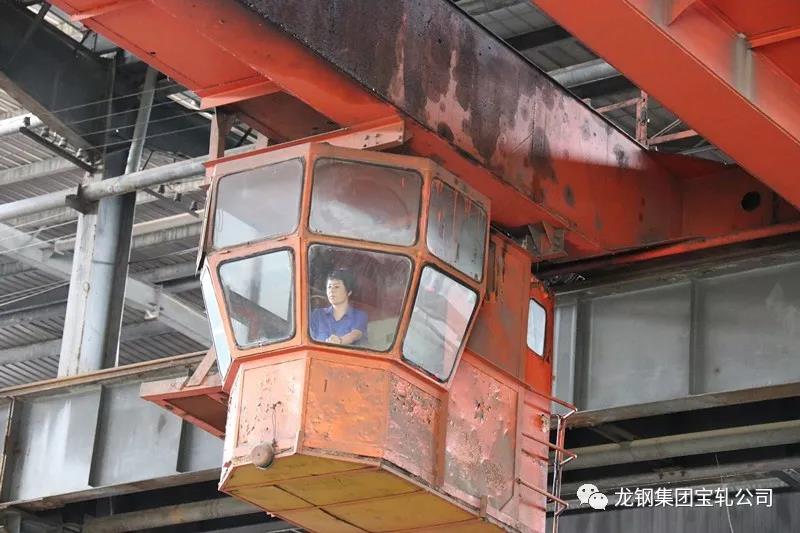 天車行吊,震撼人心,抬頭發現,美就在這巨鐵之上綻放著屬於寶軋女人的青春活力。