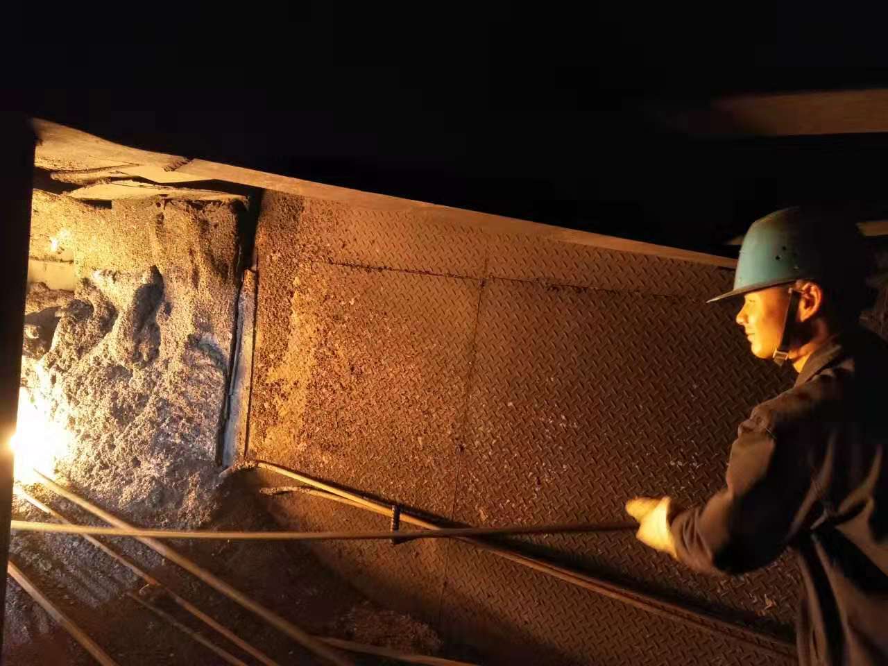 而這雙深邃的眼神的主人就是爐前班的鐵口崗位工薛金生,50多歲的他,大家習慣叫他“老漢”,他也是爐前班裏的老前輩,這是因為他已經在爐前的崗位上奮戰了幾十載,爐前的各種工作他都耳熟能詳。認真負責、恪盡職守是他日常工作的寫照。