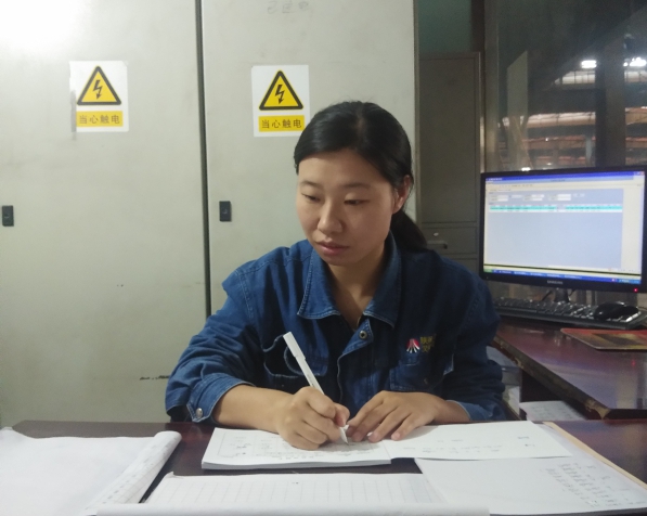 “1號車從現在輥道剛過來的這一夾鋼開始給二棒上料,給一棒上4號垛的料”,聽到這樣一個清脆的聲音,我們便知道那是優秀的爐號工—羅luo文wen娟juan在zai通tong過guo對dui講jiang機ji指zhi揮hui天tian車che如ru何he上shang料liao和he放fang料liao。別bie看kan她ta瘦shou瘦shou的de,但dan是shi一yi旦dan投tou入ru到dao工gong作zuo中zhong那na可ke是shi相xiang當dang精jing明ming能neng幹gan,因yin為wei她ta要yao做zuo的de工gong作zuo內nei容rong是shi很hen複fu雜za的de。她ta不bu僅jin要yao核he查zha鋼gang坯pi的de成cheng分fen並bing記ji錄lu在zai電dian腦nao上shang,還hai要yao按an照zhao軋zha製zhi規gui格ge進jin行xing組zu批pi入ru爐lu,同tong時shi還hai要yao指zhi揮hui1號和2號天車給上料台架上料,期間還要接收不同崗位的辦公電話、手機、對(dui)講(jiang)機(ji)等(deng)並(bing)且(qie)給(gei)予(yu)及(ji)時(shi)準(zhun)確(que)地(di)信(xin)息(xi)回(hui)複(fu)。這(zhe)項(xiang)工(gong)作(zuo)看(kan)似(si)簡(jian)單(dan),但(dan)是(shi)稍(shao)不(bu)細(xi)心(xin)就(jiu)會(hui)出(chu)錯(cuo),而(er)對(dui)於(yu)入(ru)職(zhi)漢(han)鋼(gang)公(gong)司(si)七(qi)年(nian)多(duo)的(de)她(ta)卻(que)是(shi)穩(wen)操(cao)勝(sheng)券(quan),應(ying)付(fu)自(zi)如(ru)。入(ru)廠(chang)以(yi)來(lai),她(ta)一(yi)直(zhi)從(cong)事(shi)的(de)這(zhe)個(ge)工(gong)種(zhong),兢(jing)兢(jing)業(ye)業(ye)、勤奮刻苦,用自己的實際行動向大家展示了“巾幗不讓須眉”的豪情壯誌和對漢鋼的無限熱愛。