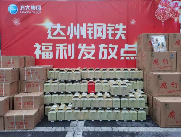 據悉,此次發放的福利禮包係方大集團在甘肅東鄉扶貧企業生產的新鮮羊肉、腐竹、粉條等優質農副產品,共發放5500餘份,價值150多萬元,發放對象覆蓋到達州鋼鐵每一位員工。在讓員工享受新春福利的同時,也為方大集團在甘肅東鄉的扶貧工作助力。